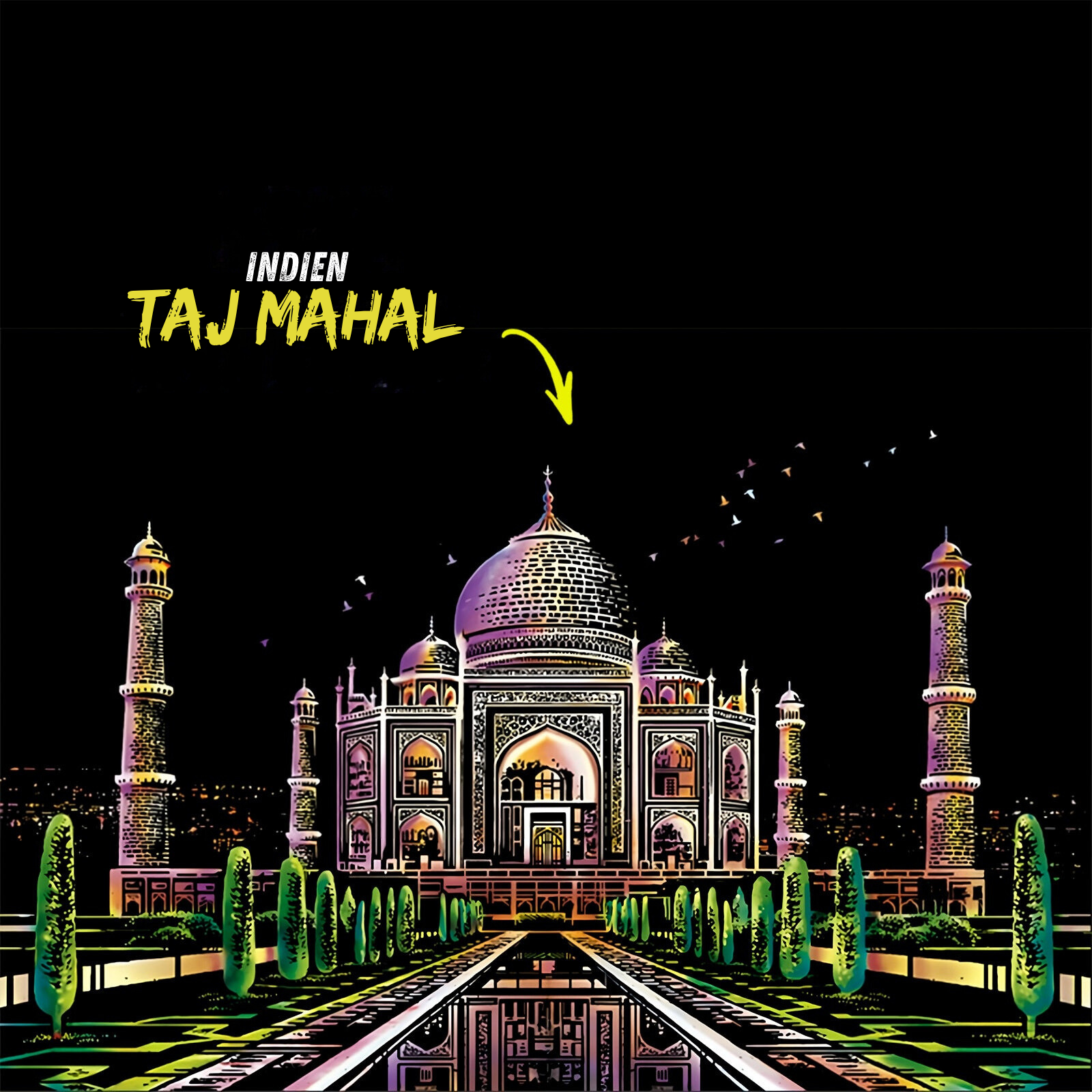Vælg mellem 16 ikoniske seværdigheder og byer, og oplev glæden ved at afsløre deres farverige skønhed gennem kreativ skrabekunst.